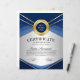 Modelo de folheto de certificado de apreciação vertical azul e dourado profissional com fundo gradiente cinza e medalha azul e dourada brilhante com um contorno de folha. Perfeito para escolas, empresas, igrejas e mais! Personalize o certificado ao seu gosto.