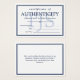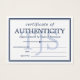 Certificado de autenticidade elegante e minimalista em azul e branco marinho ao qual você pode adicionar seu nome ou nome comercial. Personalize ainda mais com suas iniciais em azul pálido.
