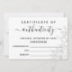 Certificado de autenticidade minimalista em preto e branco com flores de cinza desenhadas à mão e verde, ao qual você pode adicionar seu nome ou nome comercial. Impresso em uma placa de 5" x 7".