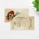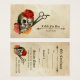 Um certificado de presente legal, vintage, grunge cartão de visita com crânio, flores rosa e tesouras/tesouras, de tom castanho/bege. Perfeito para cabeleireiros, cabeleireiros, cabeleireiros, cosmetólogos, cosmetologia, salão e muito mais!