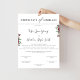 Certificado de casamento com burgundy e verde floral, pequenos rabiscos e nomes de caligrafia.