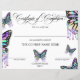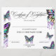 Certificado de Conclusão do Curso de Conclusão com borboleta monarca para coach de vida, cosméticos, salão de beleza, artista de unha, maquiador, cabeleireiro... com borboleta monarca holográfica