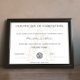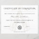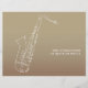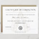 Certificado de conclusão elegante para a realização do curso de músico saxofonista com ilustração saxofone. Texto e logotipo para personalizar. Cores principais: bege dourado e cinzas.