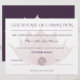 Certificado de conclusão elegante para os cursos de formação de ioga e de reiki realizados com uma flor de lótus de efeito moiré bela e moderna. Texto e logotipo para personalizar. Cor principal: roxo mudo.