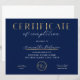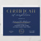 Certificado de Conclusão com Efeito Azul Marinho e Dourado com seu logotipo personalizado, perfeito para certificado de conclusão para qualquer tipo de conclusão de curso! Você também pode usar esse design de diploma de folha de ouro falso corporativo para qualquer tipo de acreditação. Você pode editar todo o texto *exceto a palavra certificado*, adicionar seu logotipo e criar prêmios profissionais para sua empresa ou organização.