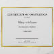 Todo o texto pode ser editado neste certificado de conclusão. Uma linha está perto do fundo para o nome do signatário. A falsa borda de ouro não é feita de folhas.
