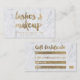 Um certificado de presente moderno, na moda, lança um cartão de visita de maquiagem com tipografia de pincel moderna, estilo de letra de mão, em folha de ouro mágico falso, num fundo de mármore branco elegante e tenso. Se precisar de alguma personalização, não hesite em me contactar