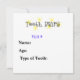 Aqui está um certificado de dente divertido para você deixar debaixo do travesseiro com o dinheiro. Também faz um excelente adicional para o livro de bebês do seu filho. Você pode personalizar isso de várias maneiras. (1) Digite o Nome da Criança. ou Exclua o texto se você mesmo quiser escrevê-lo. (2) O mesmo se aplica à assinatura "T.Fairy". Você pode guardar isso como está, ou digitar Fada dos Dentes ou Srta. Fairy ou o que você quiser. Se você quiser enviar o texto para dentro, simplesmente exclua o texto na caixa. Deixamos o slot $__ para ser gravado à mão. AGORA..... Também adicionámos algumas informações. para que possa gravar. Mas isso é tudo com você. Você pode mudar as categorias que temos se quiser, ou adicionar mais algumas. Projetamos isto para ajustado do tamanho de 5 x 5". Mas, você tem as opções para tentar outros tamanhos. Se o fizer, certifique-se de alinhar o texto, etc. NOTA: TAMBÉM TEMOS UM TRAVESSEIRO DE FEIRA DE DENTE!