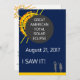 Um curioso observador de eclipse solar, do tipo um, ou certificado de espectador. Círculo negro da Lua sobre o Sol brilhante de cores amarelas e laranja. Excelente de texto americano total Eclipse solar dentro no círculo escuro. Textos de 21 de agosto de 2017, e eu VI-o! sob a imagem. Fundo azul escuro ou marinho. Fita amarela na parte inferior da placa. Duas cinzas de silhuetas masculinas e femininas no canto inferior direito do cartão. Uma mulher aponta o dedo para o eclipse, um homem tenta tirar uma foto com seu tablet computer. Sol brilhante coberto com o círculo escuro na parte de trás da placa. O texto do certificado, o local de utilização do carimbo do eclipse solar, que também se encontra à venda, e a assinatura do certificador. Carta engraçada. Totalmente personalizável. Você pode mudar tudo. Use o botão Personalizar para ajustar ainda mais o certificado de acordo com suas necessidades e desejos. Divirta-se, faça um e forneça o serviço. Não se esqueça de usar o selo de borracha.