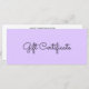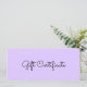 Certificado de presente comercial roxo com fundo azul pastel elegante na frente e branco atrás. Você pode usar este vale-presente para salão de beleza, spa, pequeno negócio, certificado de presente de varejo, cabelos e maquiagem, terapeuta de estúdio de ioga ou qualquer outra empresa. Veja a nossa coleção de lojas abaixo para obter mais certificados de presentes.