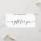 Um certificado de presente preto e branco minimalista para uma empresa profissional usar como ferramenta de promocional para desenvolver a lealdade do cliente. Você pode alterar a fonte, a cor da fonte, o tamanho da fonte, o espaçamento da letra, a cor do plano de fundo, a cor de preenchimento do fundo do retângulo branco e reposicionar o texto usando a Ferramenta Design. Você também pode excluir as informações que não deseja. O simples design elegante moderno é seu para personalizar como quiser.