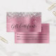 Design moderno de vidro feminino para seus pequenos certificados de presentes de cartão de visita. Todos os textos e linhas são personalizáveis se você precisar de informações diferentes enquanto cria seus próprios cartões-presente. Se você precisar de mais de duas linhas para suas informações de contato, há muito espaço para mover os diferentes elementos. A falso brilho prateado contra uma rosa claro falsa escovou imagens gráficas digitais de folhas metálicas nesta impressão design como uma foto.