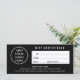 Um logotipo de negócios personalizado minimalista certificado de presente preto e branco para uma empresa profissional para usar como ferramenta de promocional para desenvolver a fidelidade do cliente. Adicione uma foto quadrada do seu logotipo. Você pode alterar a fonte, a cor da fonte, o tamanho da fonte, o espaçamento da letra, a cor do plano de fundo, a cor de preenchimento do fundo do retângulo branco e reposicionar o texto usando a Ferramenta Design. Você também pode excluir as informações que não deseja. O simples design elegante moderno é seu para personalizar como quiser.
