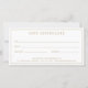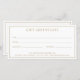 Um simples certificado de presente comercial que inclui uma design moderna e minimalista com uma fronteira. A parte de trás tem seu logotipo inicial de monograma rodeado por uma borda. Todo o texto é dourado sobre um fundo branco e as fontes e cores de fundo podem ser alteradas para qualquer cor desejada. Este certificado de presente é excelente para um salão de beleza ou spa, mas o estilo clássico pode ser usado para qualquer negócio.