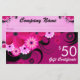 Hibiscus: Fuchsia © Sunny Mars Designs. Certificado de presente personalizável ou cartão de vale-presente com decoração floral de hibisco brilhante, rosa-escuro, roxo ou fuschia. Personalize-o com os detalhes da sua loja. Para um comprovante de 3 dígitos, por favor verifique minha loja.