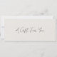 Certificado moderno de presente comercial com um layout simples e minimalista com "A Gift For You" na frente, em uma tipografia elegante de roteiro sobre um fundo de textura falsa bege. As costas têm as suas informações de contato. Este presente profissional é excelente de um maquiador, cabeleireiro, salão de beleza, técnico em lash, massagista, fotógrafo e muito mais.