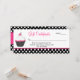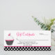 Certificado de presente para empresas de padaria bonito feito em branco e rosa com sotaque de bolinhas preto e branco. Gráficos brancos de um cupcake rosa, branco e preto decoram o lado esquerdo da placa. O texto está pronto para personalizar para atender às necessidades de sua empresa. Cartões de visitas correspondentes estão disponíveis.