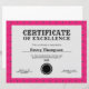 Certificado de Prêmio da Magenta Rosa Quente