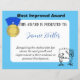 Reconhecendo o estudante que mais cresceu e melhorou seu desenvolvimento acadêmico ou pessoal. Este prêmio de certificado escolar deve dar aos alunos mais aperfeiçoados. Este é um recurso de excelente para professores e escolas, ou escolas de casa. Você pode alterar qualquer elemento se desejar, personalizá-lo e personalizá-lo.