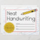 Certificado de Prêmio de Escrita Manual Neat