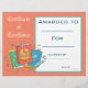 Certificado de Prêmio de Leitura em Cubo Fornecime