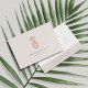 O Elegante presente certificate design exibe seu nome e/ou nome comercial sob uma ilustração falsa de abacaxi de folha de rosa em um fundo pálido de borra. Adicione o texto desejado do certificado-presente e as informações de contato comercial no verso com uma ilustração menor do abacaxi. Uma escolha elegante para salões, maquiadores, cabeleireiros, spas, boutiques e muito mais.