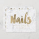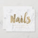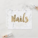 Um moderno, na moda, certificado de presente Unhas, cartão de visita de artista com estilo moderno de letra de mão, tipografia de pincel em folha de ouro falsa em uma moda e elegante fundo de mármore branco. Se precisar de alguma personalização, não hesite em me contactar