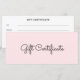 Certificado de Presente Empresarial Cor-de-Rosa com elegante fundo cor-de-rosa pincelado na frente e branco na parte traseira. Você pode usar este vale-presente para salão de beleza, spa, pequeno negócio, certificado de presente de varejo, cabelos e maquiagem, terapeuta de estúdio de ioga ou qualquer outra empresa. Veja a nossa coleção de lojas abaixo para obter mais certificados de presentes.