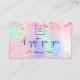 Uma tendência holográfica em cor rosa, roxo, verde de menta. Decorado com confete. Personalize e adicione o logotipo da sua empresa, nome na parte frontal: Modelos para seu nome, endereço, detalhes de contato e seu próprio código QR ao seu site ou conta de mídia social. Perfeito para mulheres empresárias, consultores, salões de beleza, donas de negócios.