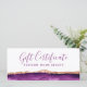 Certificado De Presente De Cor De Água Púrpura E Dourada