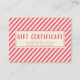 NewParkLane - Certificado de presente comercial, com um padrão divertido de listras de cana-de-açúcar cor-de-rosa e amarelo-claro, e uma fonte de inverno esbranquiçada. Todos os estilos de texto, cores e tamanhos podem ser modificados para ajustado das suas necessidades.