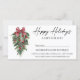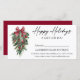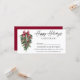 Imagem Elegante moderna de serra de Tinta de Tinta Aquática Pinheiros de inverno Verde-de-inverno com Enfeites de natal de Burgundy Red Ribbon, Pine Cones e Holly Berries Feliz Certificado de Oferta Comercial de Feriados com Envelope. Vermelha