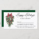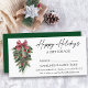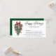 Imagem Elegante moderna de serra de Tinta de Tinta Aquática Pinheiros de inverno Verde-de-inverno com Enfeites de natal de Burgundy Red Ribbon, Pine Cones e Holly Berries Feliz Certificado de Oferta Comercial de Feriados com Envelope. Verde