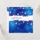 Ilustração de Feliz Natal com azul de neve apresentando um gráfico de queda de neve com flocos de neve brancos e azuis.