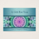 Belo design moderno com uma mandala verde, lacrimejante e azul. Excelente pequeno certificado de presente.