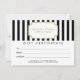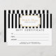 Coordenadas com o Modelo de cartão de negócios Elegante Luxe Negrito e Stripes Brancas até 1201AM. Listras pretas e brancas escuras e escuras rodadas enchem o fundo deste modelo de certificado de presente chic enquanto seu nome ou nome comercial é exibido elegantemente em uma placa de nome aparada em ouro falso. Excelente para salões, maquiadores, boutiques e muito mais. © 1201AM CREATIVE