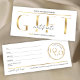 Certificado de presente para empresas Elegante em branco e ouro com espaço para o seu logotipo e detalhes da sua empresa. Perfeito para usar como spa personalizado ou certificado de presente de salão de beleza para seu bar de lash, sobrancelha ou unha. Os falsos efeitos dourados e fontes modernas acrescentam uma sensação luxuosa a essa modelo de comprovante da empresa.