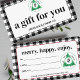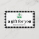 Dê o dom da escolha aos seus clientes e funcionários nesta temporada de festas com um pacote de cartões de presente de Natal personalizados. Apresentando uma design de xadrez na moda e a mensagem "Um presente para você de (nome da sua empresa)", essas placas são a maneira perfeita de mostrar sua apreciação e apoio às pequenas empresas. Basta carregar o logotipo de sua empresa e personalizar sua mensagem, e nós vamos impressão seus certificados de presentes em cartões de visitas de alta qualidade que certamente impressionarão. Cada cartão pode ser resgatado para bens ou serviços em sua empresa, e fazer-os como um presente versátil e conveniente para todos os que estiverem em sua lista. Peça seu pacote de cartões de presente de Natal hoje e espalhe a alegria das pequenas empresas neste feriado!