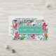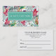 Em estilo ilha vibrante, este cartão-presente temático tropical tem um padrão colorido de orquídeas exóticas, lírios e flores de papagaio com frentes de palma espalhadas e folhagem sobre um fundo branco contrastante. Um quadro retangular aqua acentua o título do cartão-presente na parte frontal do cartão. A parte traseira do cartão tem informações de negócios e espaço para preencher o nome e as informações dos destinatários do presente. Todo o texto pode ser editado com os detalhes desejados. Este vale-presente é uma escolha maravilhosa para diversos tipos de negócios, de salões e spas, a compras de varejo, maquiadores, esteticistas e muito mais.