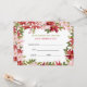 Certificado de Presente de Poinsettia Vermelha Floral de Cores Aquáticas