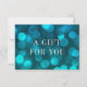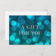 Cartão de Certificado de Presente com a menção "A Gift For You" em folha prateada falsa contra um padrão de luz azul aqua na frente. Personalize este cartão com seus detalhes substituindo o texto do marcador de posição. Para obter mais opções, como alterar a fonte, o tamanho/cor do texto ou o espaçamento entre letras, clique no botão "Personalizar". *Observe que a Marca d'água do Zazzle que aparece na visualização de zoom NÃO aparecerá no produto impresso final. © Rosewood e Citrus