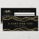 Certificados de presente luxuosos com padrão de agata de mármore preto e dourado, e fundo preto. Perfeito para salões de beleza, salões de cabelo, maquiadores, salões de unhas, spas e muito mais!