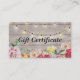 Elegante Vintage Modern Chic String Lights and Floral with Natural Rustic Wood Texture Background Salon ou Boutique Gift Certificate Modelo de cartão de negócios. Um Modelo de Certificado de Presente de Salão Elegante ou Boutique. Com Design de Lâmpadas de Madeira e Cordas com Flores Coloridas de Aquarela. Perfeito para um Salão de Beleza, Bar de Nail e profissões relacionadas.