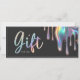 Eleve seu negócio de salão ou boutique com nosso Certificado de Presente de Salão de Negócios da Loja Iridescente. Este cartão-presente de na moda não é apenas para os grupos de tendências; é perfeito para consultores e planejadores de eventos também. Com uma design moderna e elegante, é a escolha ideal para um negócio de moda e moda.