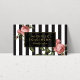 Coordena com o Cartão de visita de Salão Floral Striped Salon Vintage até 1201AM. Este certificado de presente personalizável apresenta um fundo listrado preto e branco com uma camada de ilustração floral vintage para uma estética muito chique e na moda. © 1201AM CREATIVE