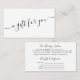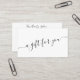 Esta cartão de visita de certidão de presente giro e glamourosa é perfeita para uma na moda e profissional de negócios. Ele retrata uma fonte ousada moderna, emparelhada com uma tipografia negra cursiva escrita à mão sobre um simples fundo branco. No verso, ele inclui informações de contato que podem ser completamente alteradas ou personalizadas para seus detalhes. É profissional, elegante e na moda; a maneira perfeita de anunciar sua empresa e estilizar seu marketing e material de propaganda para seus clientes. ***NOTA DE DESIGN IMPORTANTE: Para qualquer solicitação de design personalizada, como solicitações de correspondência de produtos, alterações de cor, mudanças de posicionamento ou qualquer outra solicitação de alteração, clique no botão "mensagem" ou envie um e-mail ao designer diretamente em lafemme.art@gmail.com. Você pode até enviar um e-mail para ela solicitando um design completamente personalizado e novo.