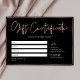 Tendy and chic Business Gift Certificate em preto e rosa gold com espaço para o seu logotipo e detalhes da sua empresa. Perfeito para usar como certificado de presente de salão de beleza personalizado para seu salão de pestana, estúdio de cabelos ou spa de unhas. Os faux rosa gold effects e a fonte moderna do script adicionam uma sensação de brilho a este modelo de vale-presente profissional.