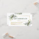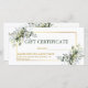 O Certificado de Oferta de Uvas Botânicas de Cores Aquáticas Elegantes modernas inclui folhas de eucalipto, folhagem botânica verde, folhas azuis empoeiradas e outros belos lençóis botânicos.