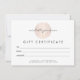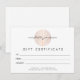 Um motivo elegante de um padrão de folha de ouro rosa em forma circular é combinado com seu nome ou nome comercial neste certificado de presente personalizado. Excelente para salões, espas, treinadores de vida, centros de bem-estar, boutiques e muito mais. Arte original e design © 1201AM Design Studio