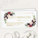 O Certificado de Presente para Empresas Florais de Cores Aquáticas Elegantes Modernas inclui rosas de entrelaçamento, flores vermelhas, rosas cor-de-rosa, flores azuis e verde - Quadro Dourado e Texto Dourado